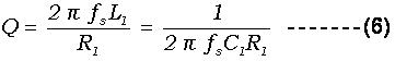 对于石英晶体共振子, 电气质量因子Q是很重要的一个特性. 电气质量因子可以用下列公式(6)表示