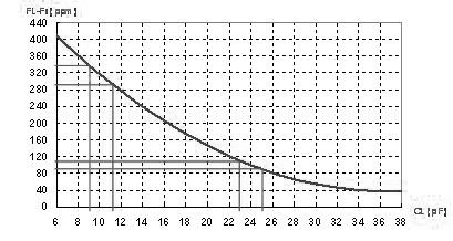 石英晶体共振子应用在并联振荡线路上, 振荡频率与负载电容CL有很大的关系. 这在前面的公式(3)就可以看到. (图十一) 是以并联振荡线路上FL频率对负载电容CL的变化曲线示意图.